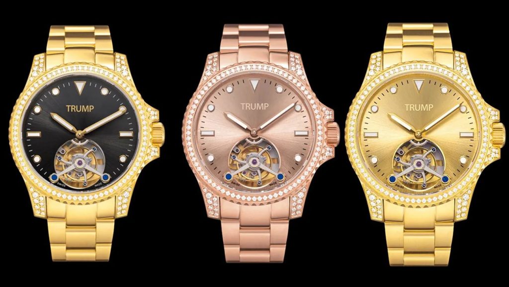 またトランプは、いくつものダイヤモンドとトゥールビヨンを備えた金無垢の腕時計を10万ドルで販売しています。他にもさまざまなモデルの腕時計を販売しています。トランプ自身が所有する時計とは変わって、これらのモデルはかなり派手で、トランプの印象にピッタリなものでしょう。