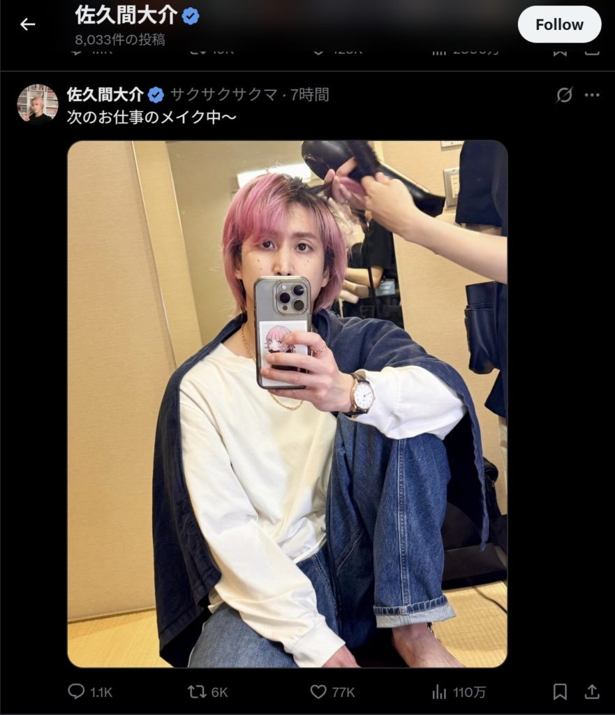 Snow Manの佐久間大介さんが、公式X(旧Twitter)に投稿した写真の中で着用していた腕時計がファンの間で話題になっています。注目されたのは、その腕元に輝いていたブレゲの「スースクリプション」モデル。